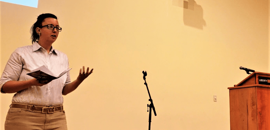 I woke up earlier than I needed to and got dressed, keeping in mind I’d have a mic pack secured to my belt, and that I feel most comfortable when I am covered up in thick clothes. The drive to Liberty North was, according to my GPS, an hour and twenty-five minutes, and registration for the conference opened at 8:30am.
