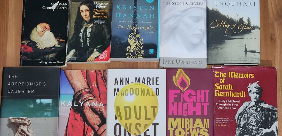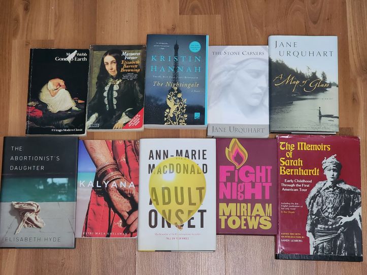 I spend a lot of time in fiction and in biographies. I pull several books to add to my collection, many written by authors who wrote other works I’ve loved. I pull The Stone Carvers by Jane Urquhart, whose poetry book Some Other Garden taught me how a poem can bare a secret as well as explode with truth. I pull Fight Night by Miriam Toews, whose Women Talking took me into a world so like and so unlike my own. I pull Adult Onset by Anne-Marie MacDonald, whose Fall On Your Knees made me want to write again.
