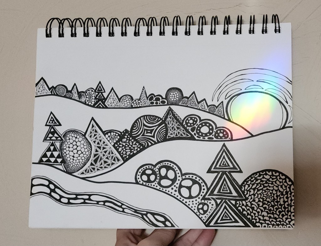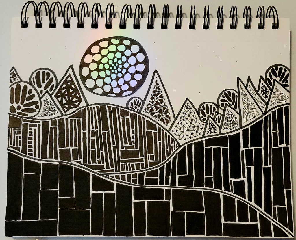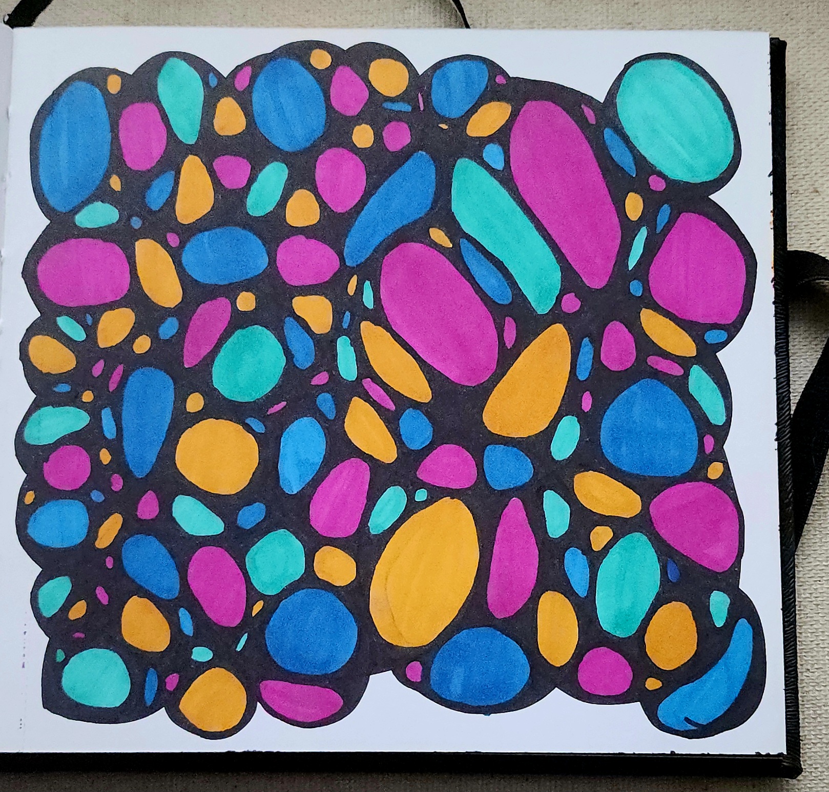 I don’t want to diminish the pesky self-loathing I encountered as I started doing what I considered art (and not ‘just’ zentangles, or neurographic art, as the adults are calling it now). But it just wasn’t that loud. I let myself make mistakes and keep going. I let myself be ‘bad’ (re: new).